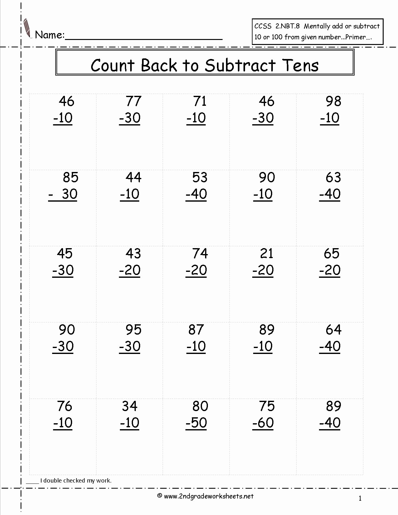5 Free Math Worksheets Second Grade 2 Subtraction Subtract whole Tens From 3 Digit Numbers – Welcome aboard the journey to the world of education printable worksheets in Math, English, Science and Social Studies, aligned with the CCSS but Professionally… Continue Reading →