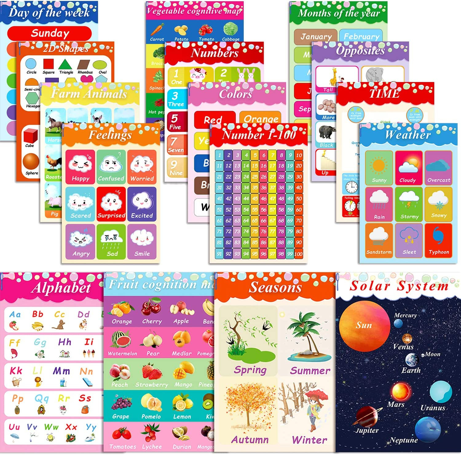 Duufin 16 Pieces Educational Posters for Toddler and Kids with 100 Pieces Glue Point Dot ABC Posters Preschool Number Posters Kindergarten Classroom from farm animals display preschool , source:amazon.com