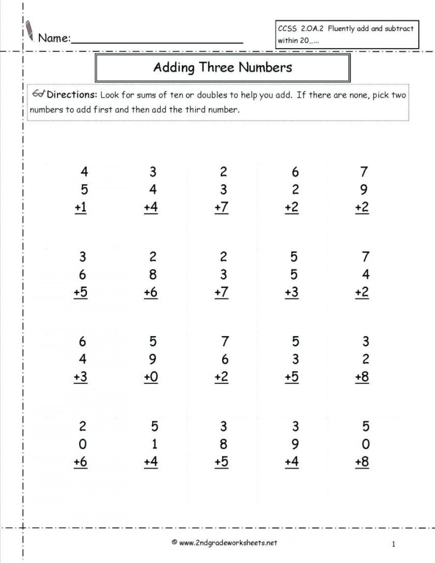 3 Free Math Worksheets Second Grade 2 Addition Add 3 2 Digit Numbers In Columns – Welcome aboard the journey to the world of education printable worksheets in Math, English, Science and Social Studies, aligned with the CCSS but universally… Continue Reading →