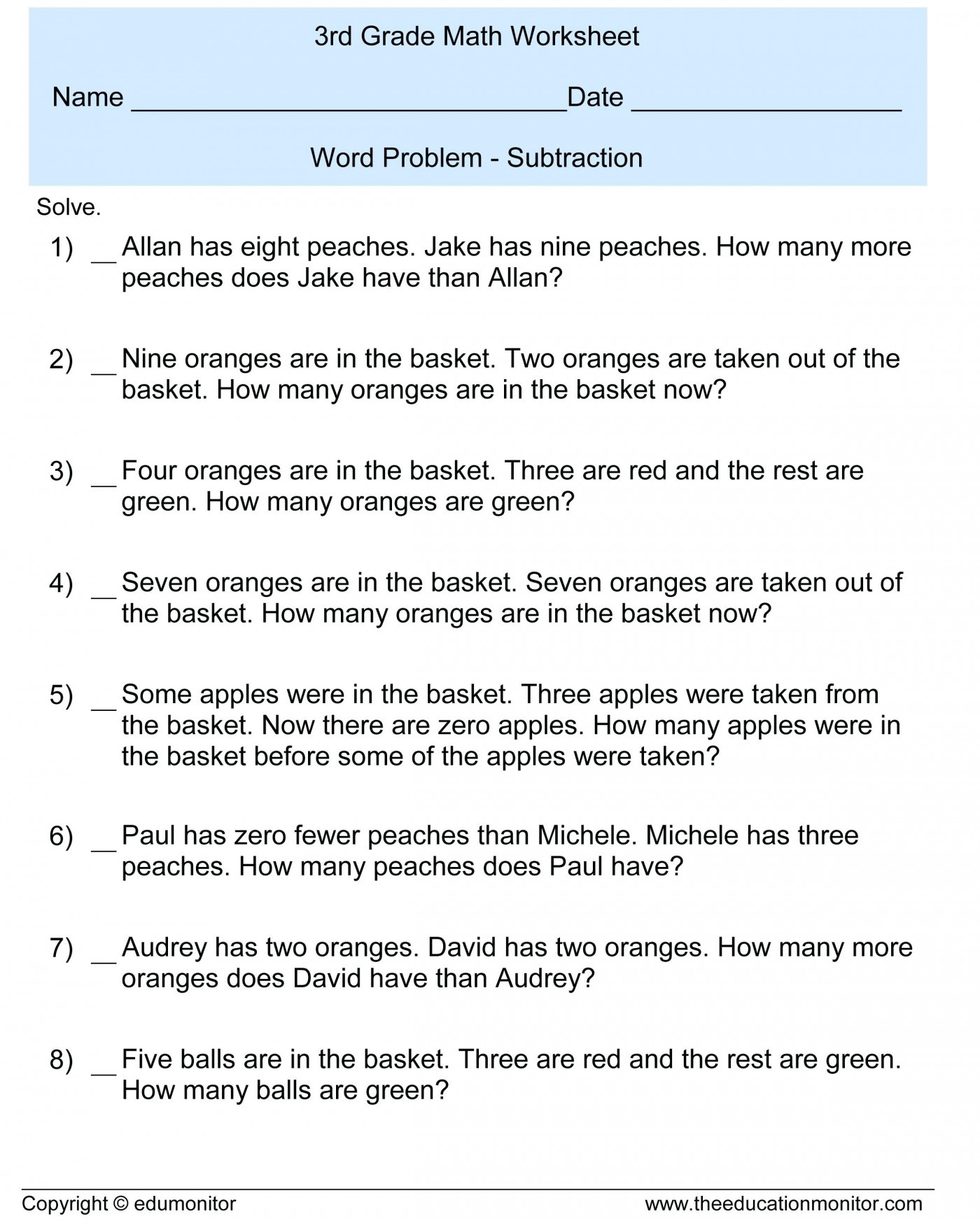 4 Free Math Worksheets Third Grade 3 Subtraction Subtract Borrow Across 3 Zeros – Welcome aboard the journey to the world of education printable worksheets in Math, English, Science and Social Studies, Coordinated with the CCSS but Professionally applicable to… Continue Reading →