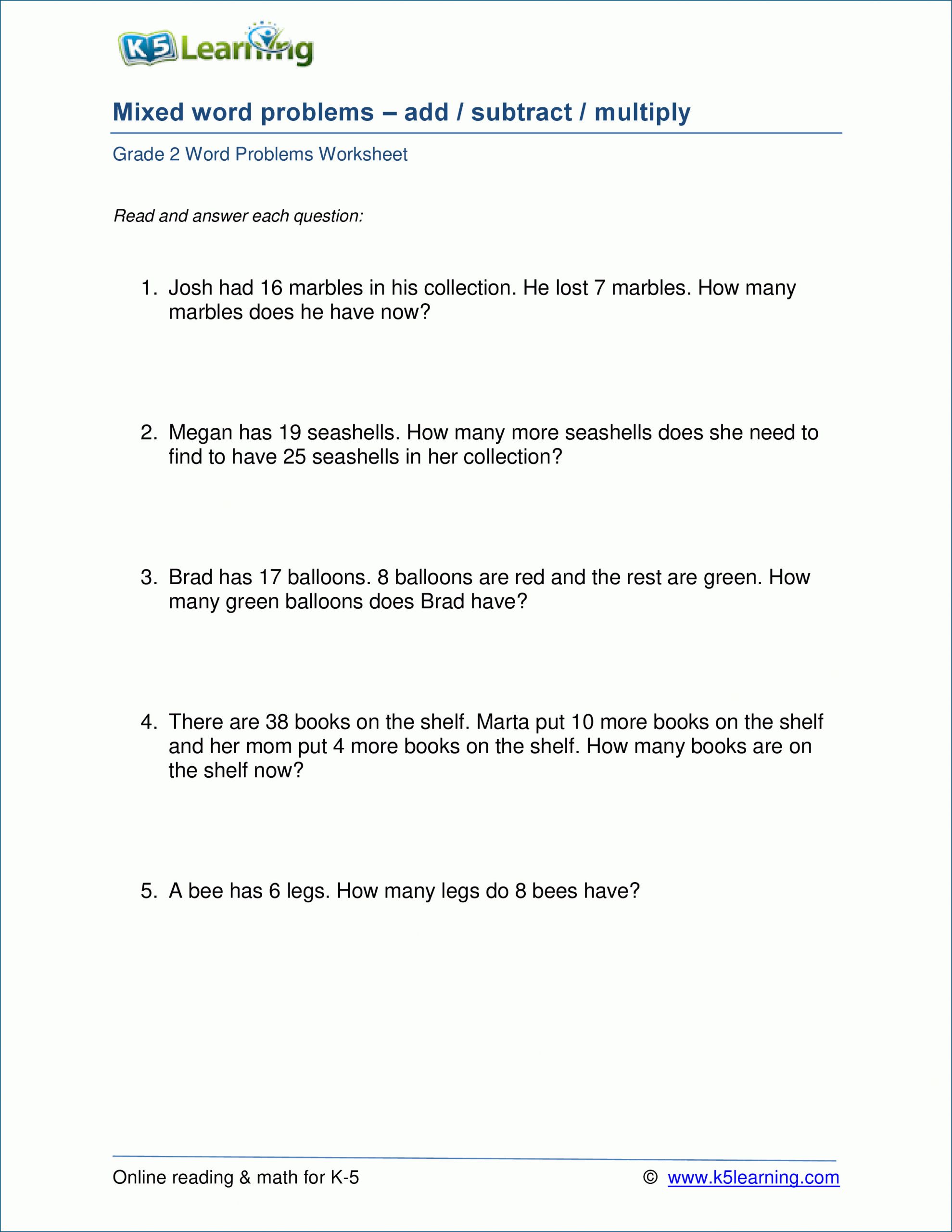 5 Free Math Worksheets Second Grade 2 Word Problems – Welcome aboard the journey to the world of education printable worksheets in Math, English, Science and Social Studies, aligned with the CCSS but Professionally applicable to students of grades. Lively… Continue Reading →